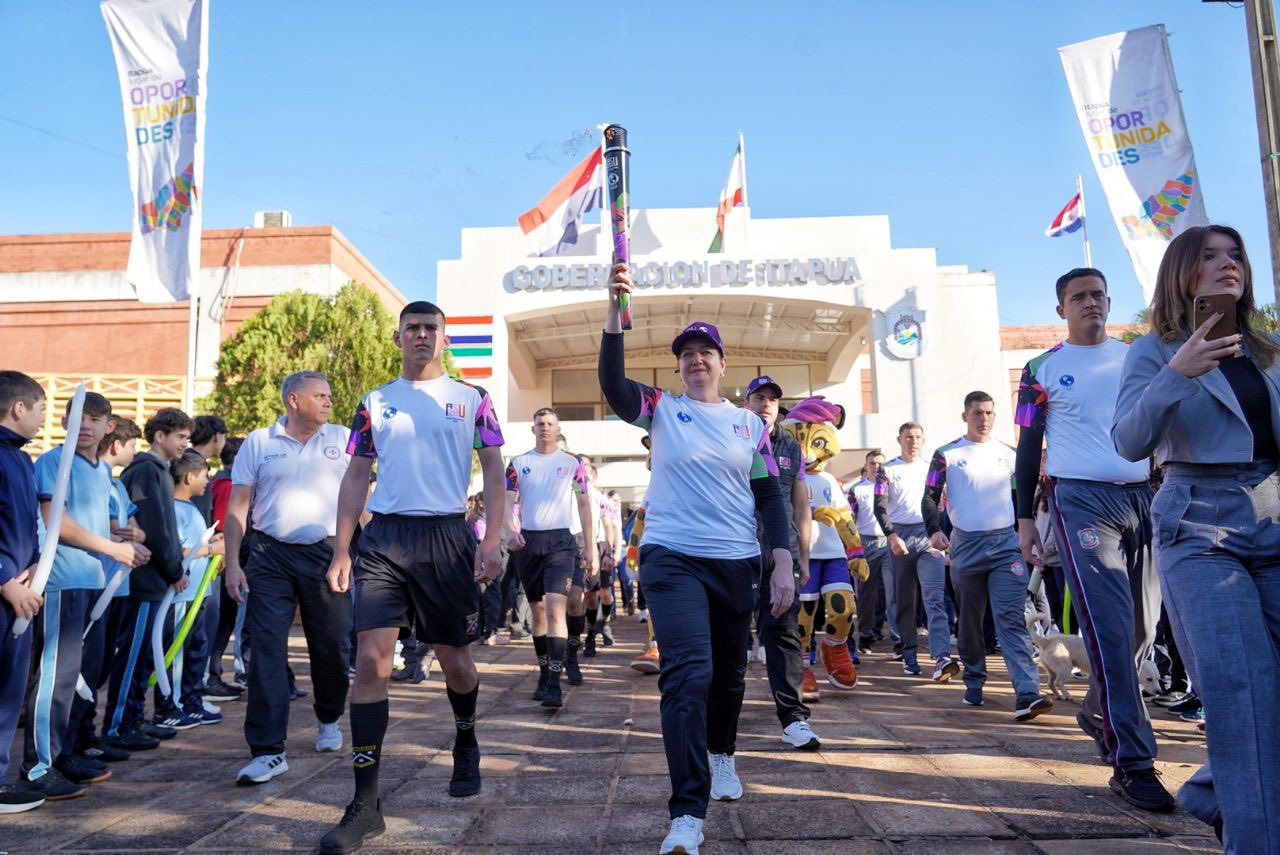 Frente a la sede del Gobierno de Itapúa, el Gobernador Javier Pereira y la Primera Dama Departamental Nancy Berndt de Pereira encabezaron el acto de entrega de la antorcha al primer portador. En ese marco, la Presidenta de la Junta Departamental, Miryan Velázquez, entregó la resolución que declara de Interés Departamental esta actividad de trascendencia nacional. Posteriormente, en la histórica Plaza de Armas, la llama fue recibida por el Gobernador, cerrando así un recorrido lleno de emociones y significado.