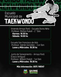 La Municipalidad de Cambyretá invita a niños, jóvenes y adultos a formar parte de la Escuela Municipal de Taekwondo, un espacio de formación deportiva que promueve la disciplina, el respeto y la vida saludable.