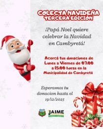 Municipalidad Ruta 14 Cambyreta Centro., Cambyreta, ParaguayTodos juntos hagamos un corazón palpitantes llenos de emoción.!!! Hasta el 19 de diciembre contamos con tu aporte Navideña para nuestros niños Papá Noel quiere celebrar la Navidad en Cambyretá! Llega la tercera edición de la Colecta Navideña 🎁 Invitamos a todos a ser parte de esta hermosa iniciativa solidaria, acercando sus donaciones a la […]