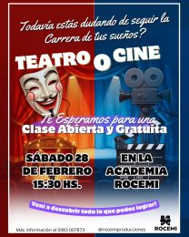 Si alguna vez soñaste con subir a un escenario, actuar frente a cámara, Dirigir tu propia película o descubrir el artista que llevás dentro… esta es tu oportunidad Te invitamos a vivir una Clase Abierta y Gratuita en la Academia ROCEMI, donde vas a experimentar cómo trabajamos, cómo se forman nuestros alumnos y todo lo que […]