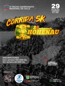 Se viene con todo la Corrida 5K por el 126° Aniversario de Hohenau! Este 29 de marzo, desde las 07:00 horas, súmate a la 3.ª fecha del Campeonato Regional de Calle con salida y llegada en el Parque de las Naciones. Inscripción: Gs. 100.000 (con remera) | Gs. 60.000 (sin remera) Informes: 0986 521 250 […] |