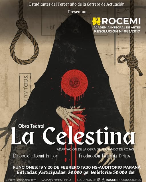 Estudiantes del tercer año de Actuación presentan La Celestina, adaptación del clásico de Fernando de Rojas. Dos funciones imperdibles. ¿Ya tenes tu entrada? #Rocemi #ObradeTeatro #LaCelestina #Encarnacion