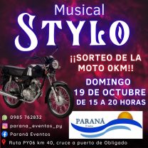 Este domingo te esperamos en Paraná Eventos Bailamos con MUSICAL STYLO Y llega el momento más esperado!!, el sorteo de la moto 0 km! De 15:00 a 20:00 horas¡No faltes!