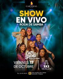 ¡Viernes de samba, música y buena vibra en Casino Carnaval! Ven a disfrutar del show en vivo de Canto Das Sereias y aprovecha el 3×2 en Pilsen toda la noche